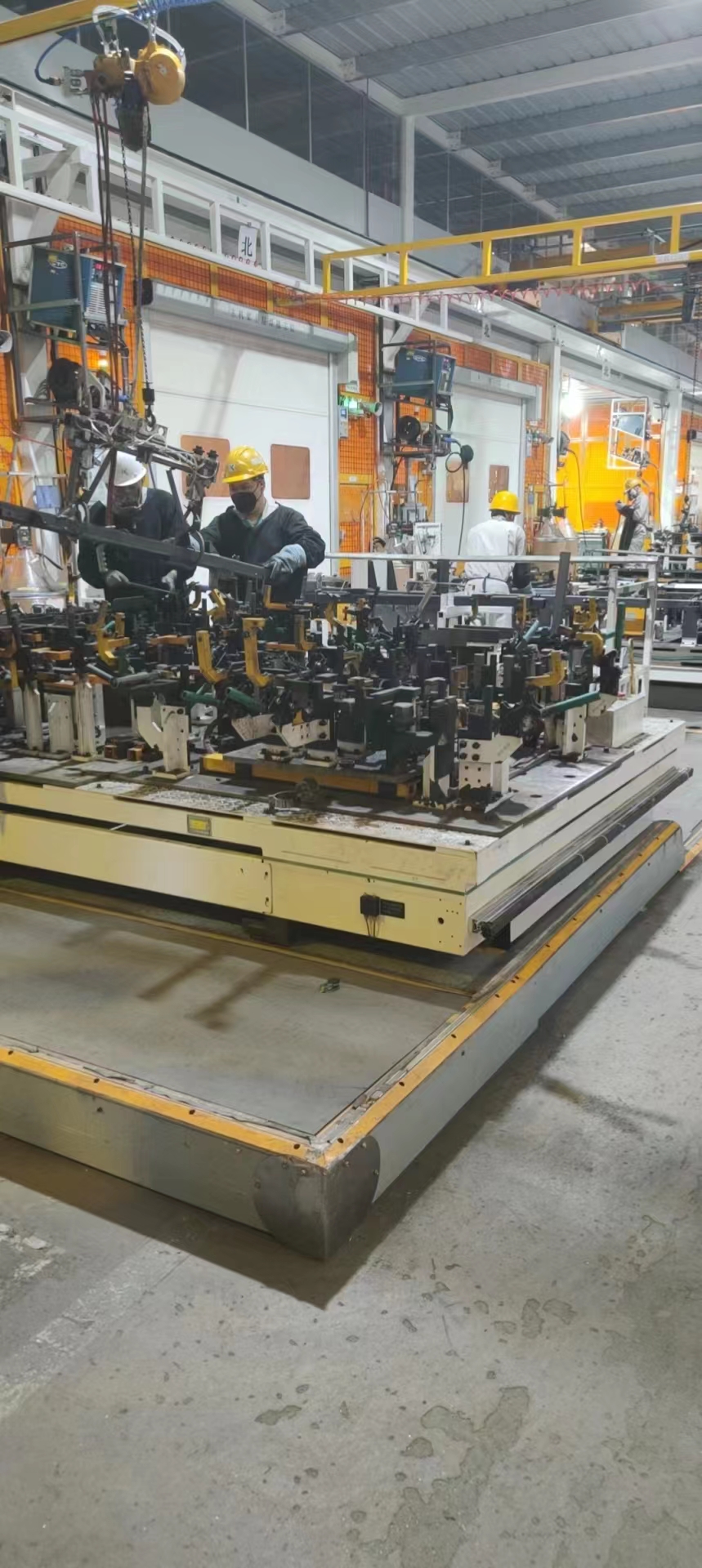 這次工作站改造的原因是現(xiàn)狀主機架的生產(chǎn)是在一臺治具上完成所有的焊接,治具定位多、結(jié)構(gòu)復(fù)雜,造成機器人焊接干涉區(qū)域多,自動化率低。改造后將主機架分為四個組件分別焊接后再進行拼接,治具結(jié)構(gòu)簡單,可兼用機型多,自動化率提高。