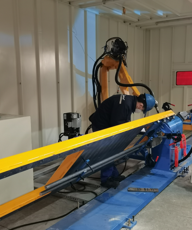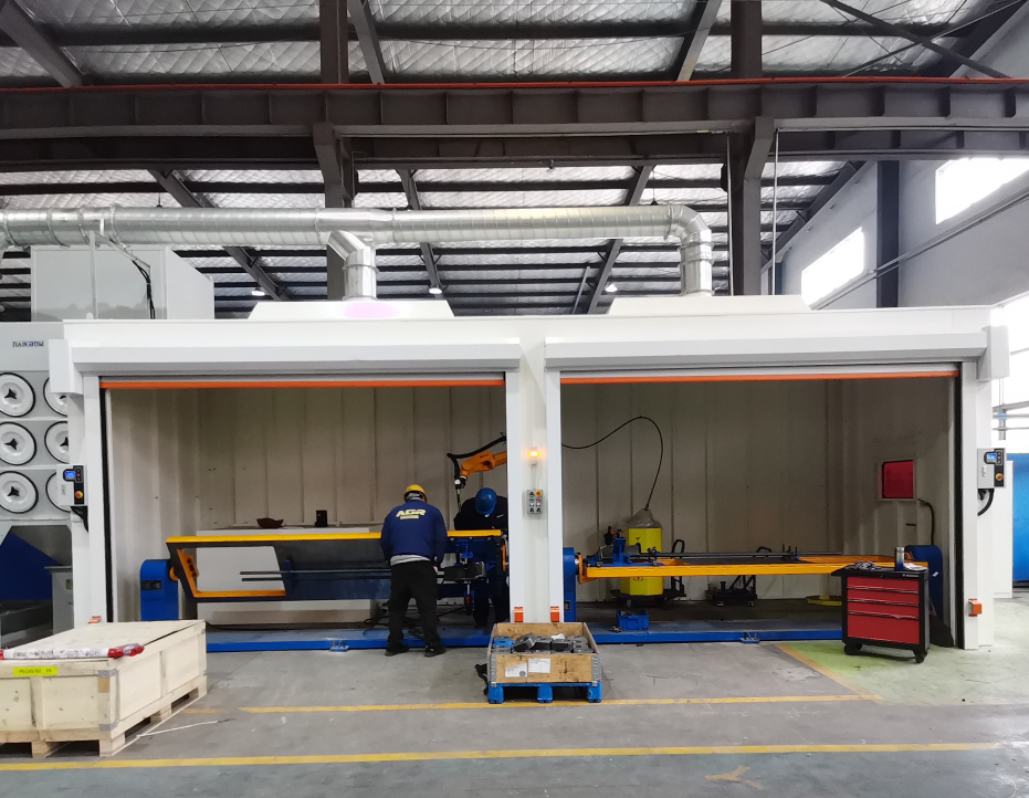 機(jī)器人弧焊房:能夠保證焊接工位90%空間被封閉煙塵不易溢出,集塵效果好;防護(hù)卷門與焊接機(jī)器人手臂通過伺服控制系統(tǒng)相互連接,使防護(hù)卷門完全自動(dòng)化開啟、關(guān)閉,有效的隔離設(shè)備焊接產(chǎn)生的有害物質(zhì),以保護(hù)工人身體健康。